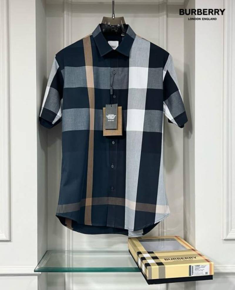 Burberr y Checks Half sleeve Store article Shirt with Original box ( Green Blue )